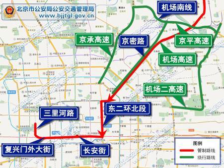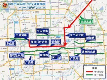 5月11日中午和晚间,机场高速进京方向,东二环北段北向南、长安街、复兴门外大街、三里河路等路段,将会分时分段采取临时交通管理措施。