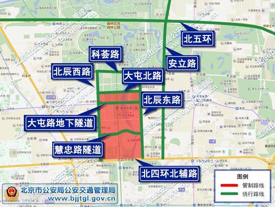 预计对东北二环、三环内环方向,建外大街进城方向,车辆的通行影响大,社会车辆可以绕行莲花池东路、广安路、阜成路、前三门大街、两广路、平安大街、通惠河北路、广渠路、朝阳路、东四环、机场二高速、京平高速、机场辅线、京密路等道路行驶。